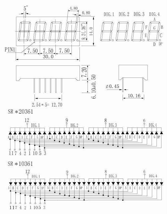 - 描述:4位共陰0.36英寸 高亮黃綠色