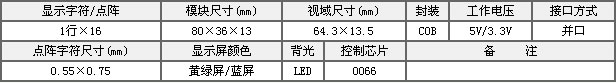 名稱(chēng):OCMC1X16A 黃綠屏5V